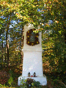 rzeźbiony, barokowy w małej kapliczce, pomalowany farbą. Obecnie w